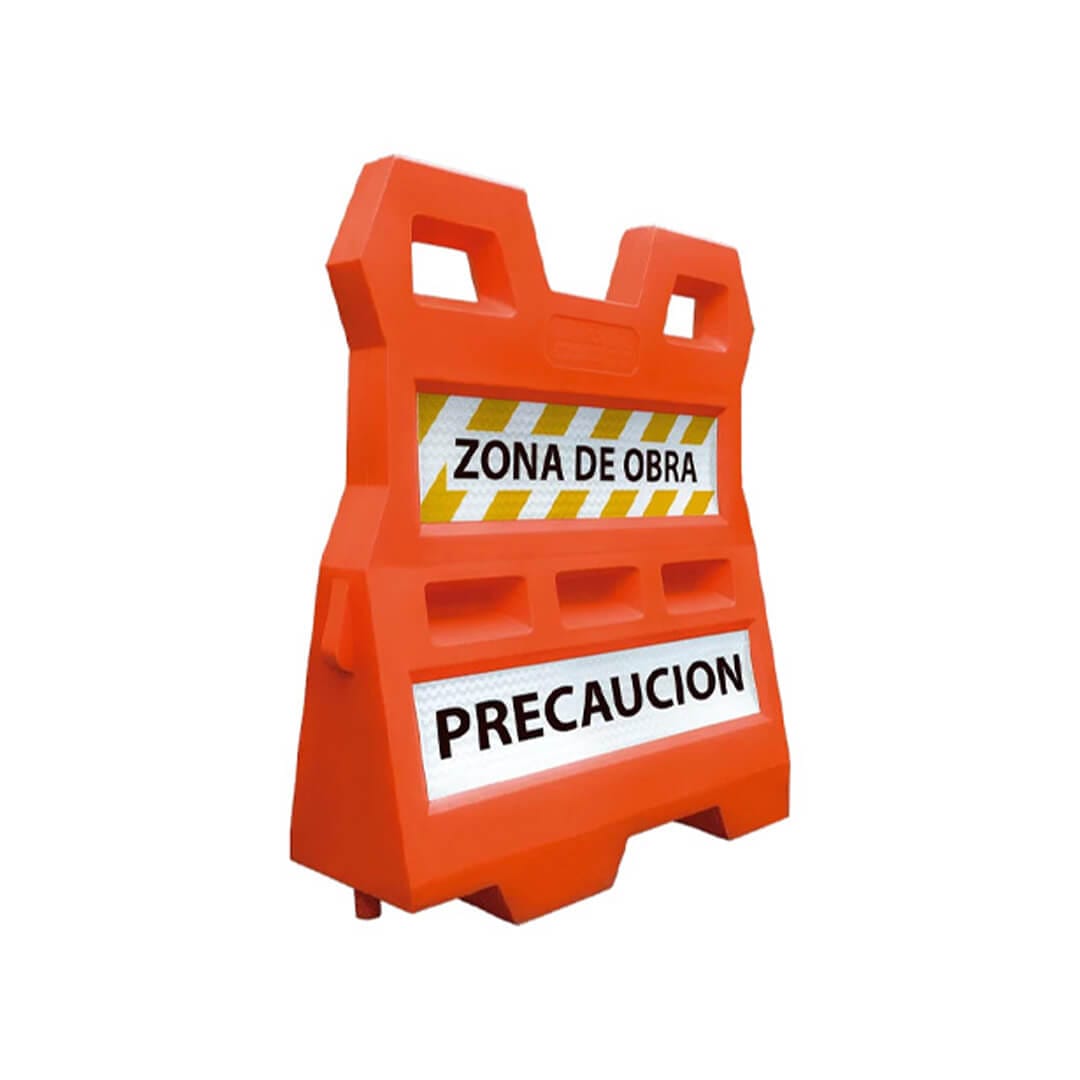 Descripción: Barrera de protección vial fabricada en polietileno de media densidad. Barrera continua con sistema de ensamble, machihembrado y protección contra rayos U.V. Color: Naranja. Medidas: Largo: 120 cm. Ancho superior: 10 cm. Ancho inferior: 45 cm. Alto: 145 cm. para usar vacía o con lastre. Con dos reflejantes grado ingeniería.