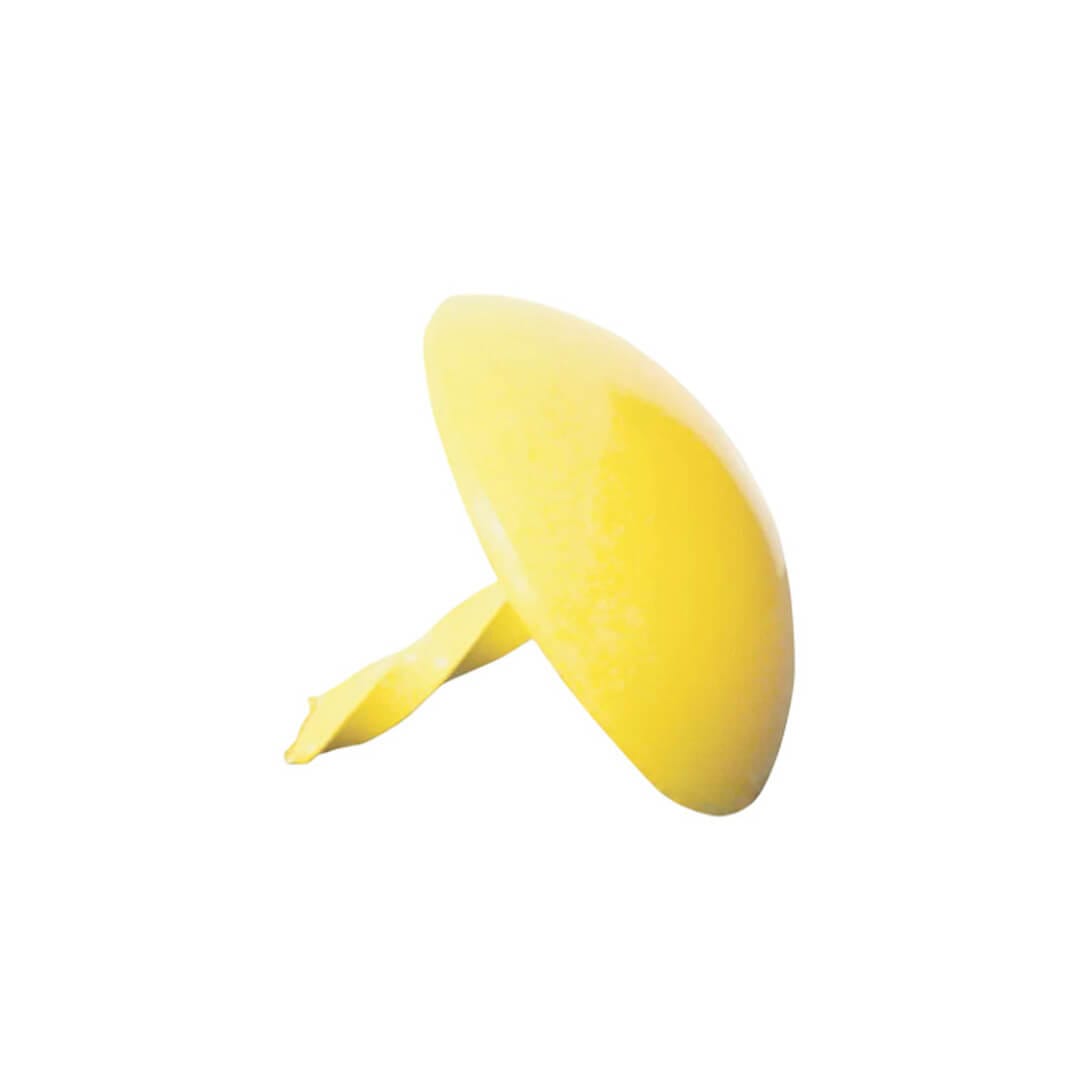 Descripción: Botón fabricado en acero. Alta resistencia a impactos. Ideal para señalar zonas peatonales, cruces, vueltas, etc. Color: Amarillo. Medidas: diámetro: 10.1 cm. altura: 2.1 cm. Con perno.