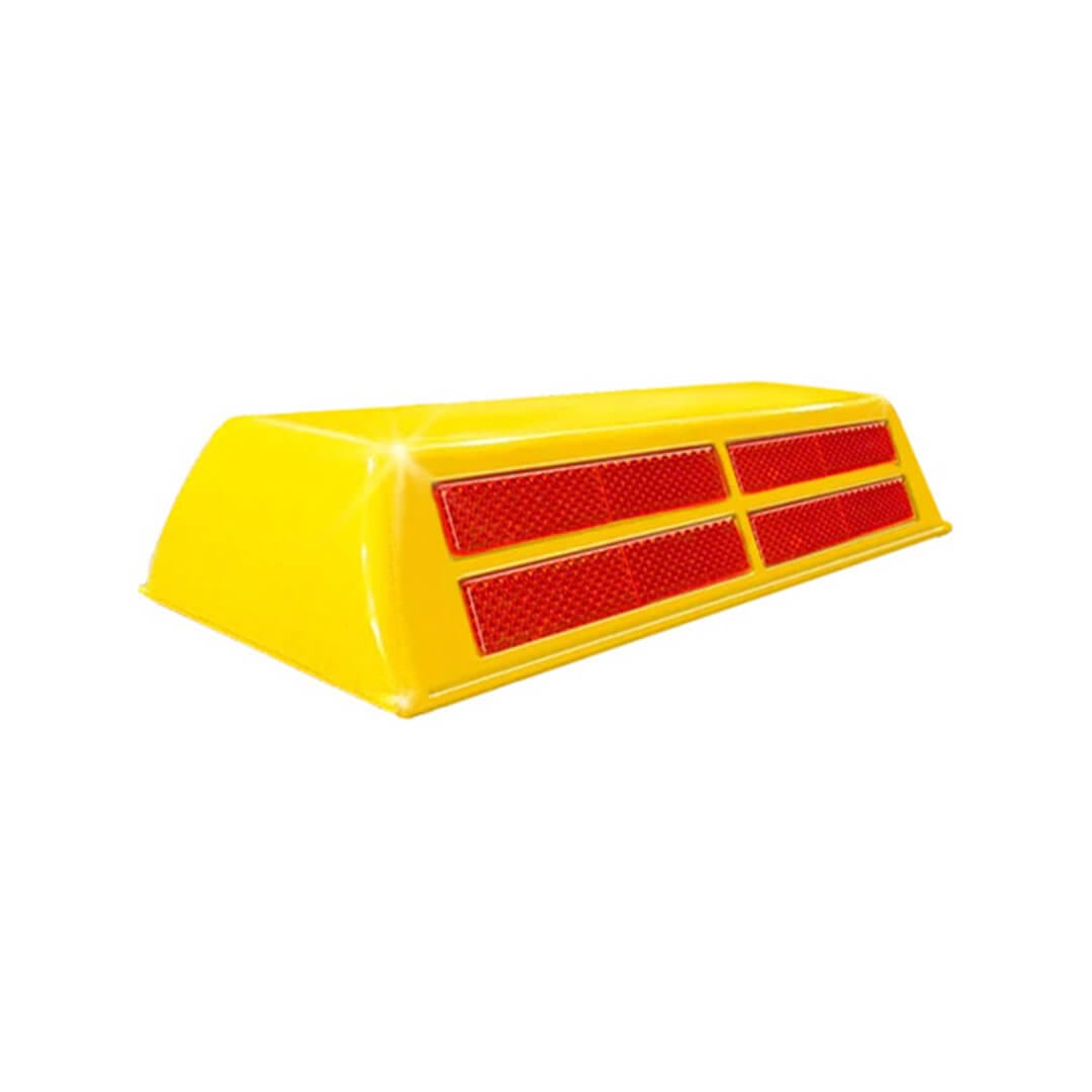 Descripción: Cuerpo fabricado en abs, con 4 reflejantes en color Rojo. Excelente como reductor de velocidad. Gran resistencia. Medidas: Largo: 25.0 cm. Ancho: 10.5 cm. Alto: 4.5 cm. No incluye perno.